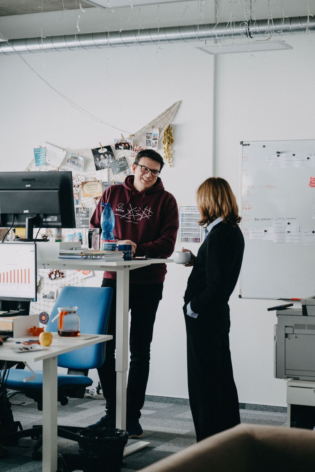 Kros je viac o priateľstvách a dobrých vzťahoch než len o chodení do práce. Stretávame sa aj mimo nej a nie len na pive. Vzájomne si pomáhame s maľovaním či sťahovaním. To všetko môžeme len vďaka dôvere a rešpektu, ktorý medzi sebou máme. Snažíme sa byť otvorení a úprimní. Problémy a otázky nenechávame vyhniť, ale ideme priamo do nich. Bez ohľadu na to, na akej si pozícii alebo ako dlho si v KROSe. Znie to krásne, ale nie je to jednoduché. Občas skĺzneme z cesty, ale dávame si na to pozor a zlepšujeme sa. Ono nie je ľahké ustáť otvorenú konštruktívnu kritiku a dokázať si z nej s chladnou hlavou vybrať to podstatné. Veríme, že len s “čistým stolom” sa môžeme na seba spoľahnúť a zabrať.